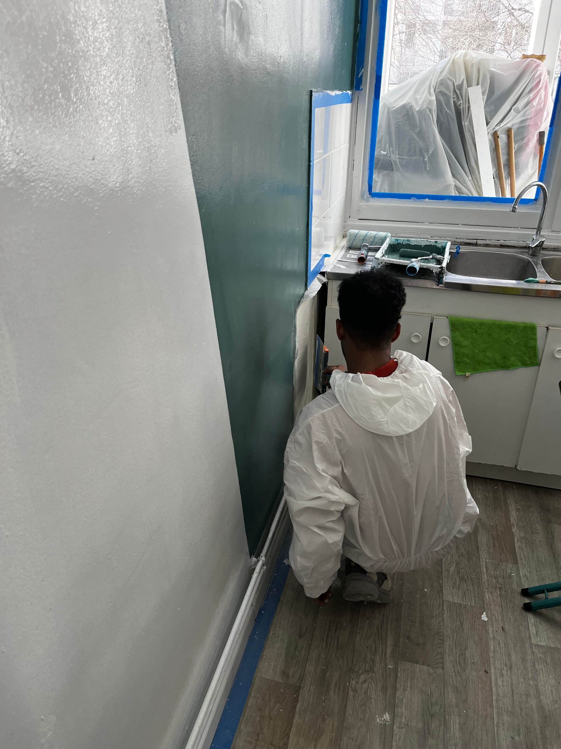 La mission de ce chantier a été de rénover un logement d’insertion afin d’offrir un cadre de vie accueillant à un père et sa petite fille. Les volontaires se sont attelés à la peinture complète de l’appartement, incluant la cuisine, le salon, une chambre, le couloir, la salle de bain et le balcon. L’équipe a également pris le temps d’effectuer quelques travaux de menuiserie pour réparer un meuble de cuisine, assurant ainsi un résultat impeccable.